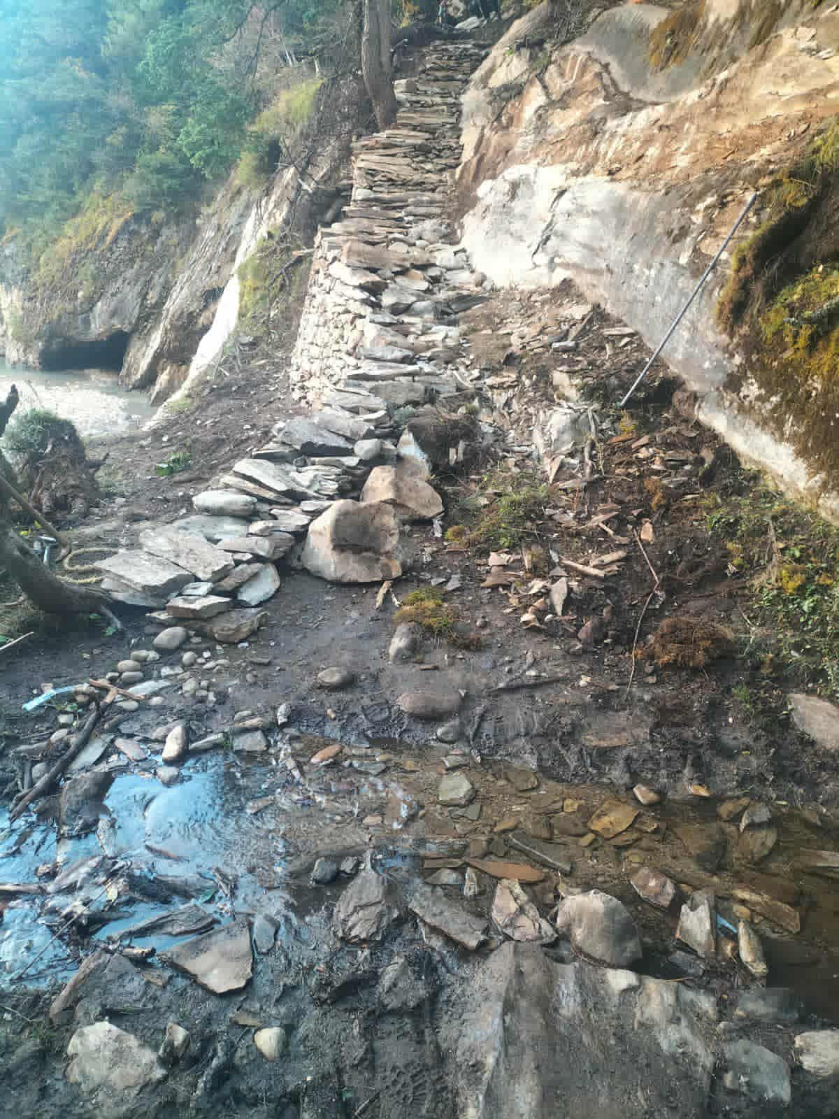 अपिखोलामा नयाँ काठेपुल निर्माण गरिएको छ भने अपिखोला छेउमा रहेको चट्टान भूभागमा पर्खाल र सिढी लगाएर बाटो बनाइएको छ ।